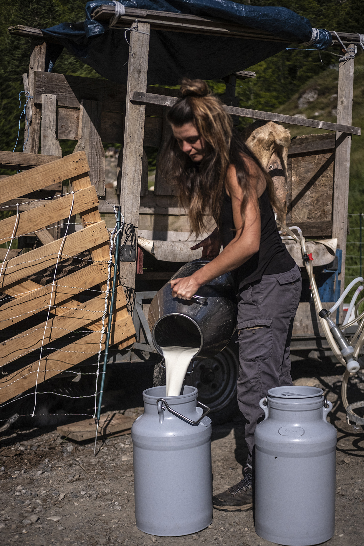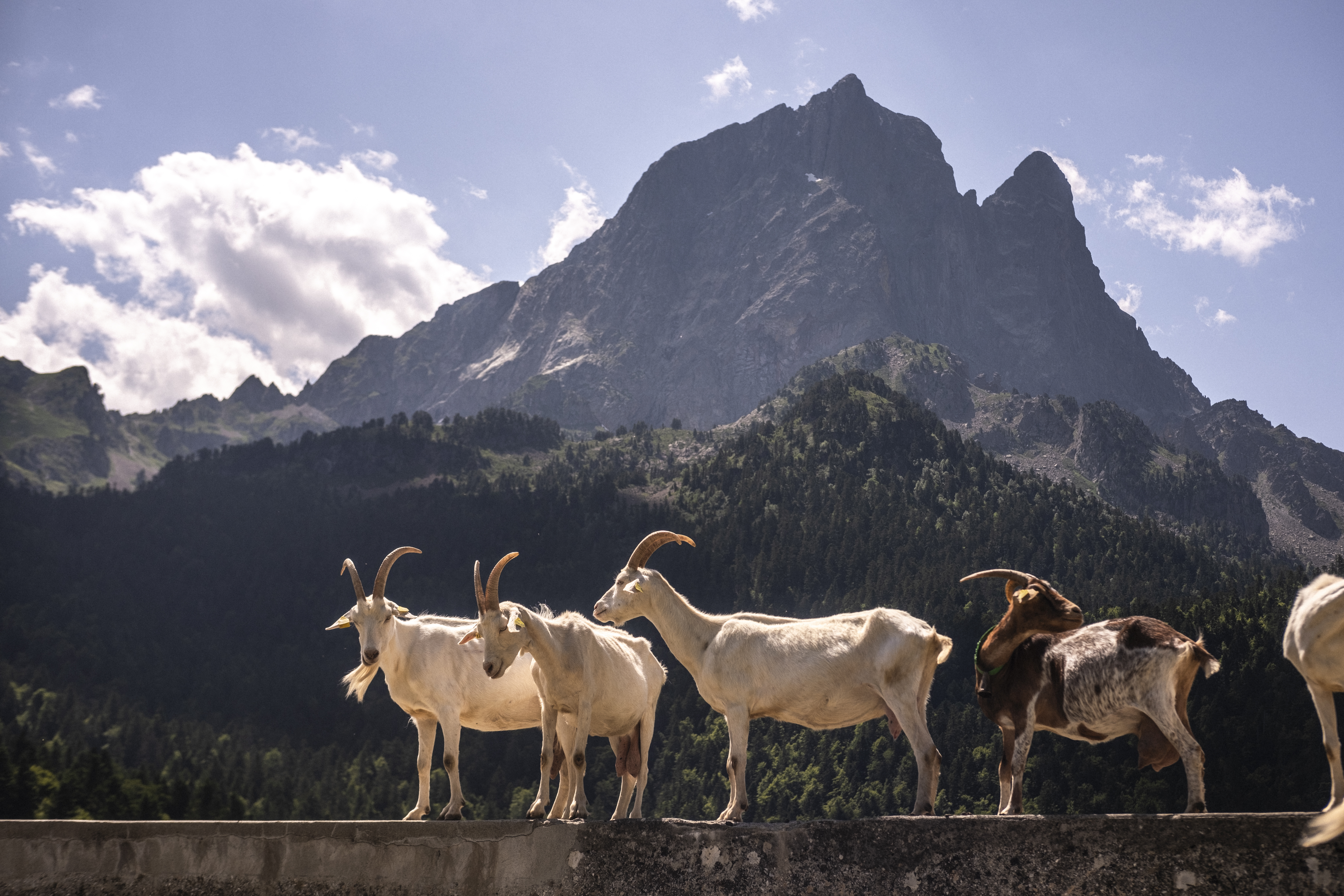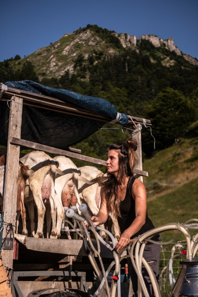 L’été, nous transhumons en montagne, au plus proche du cycle de l’herbe. En juillet et août, les chèvres rejoignent les verts pâturages de la Vallée d’Ossau et particulièrement l’estive de Bious-Oumettes, sur la Commune de Laruns, au pied du Pic du Midi d’Ossau. Nous gardons les chèvres* et fabriquons le fromage sur place. Le fromage d’estive, avec toute la flore qui le compose, est d’ailleurs un produit très rare et d’excellence!
