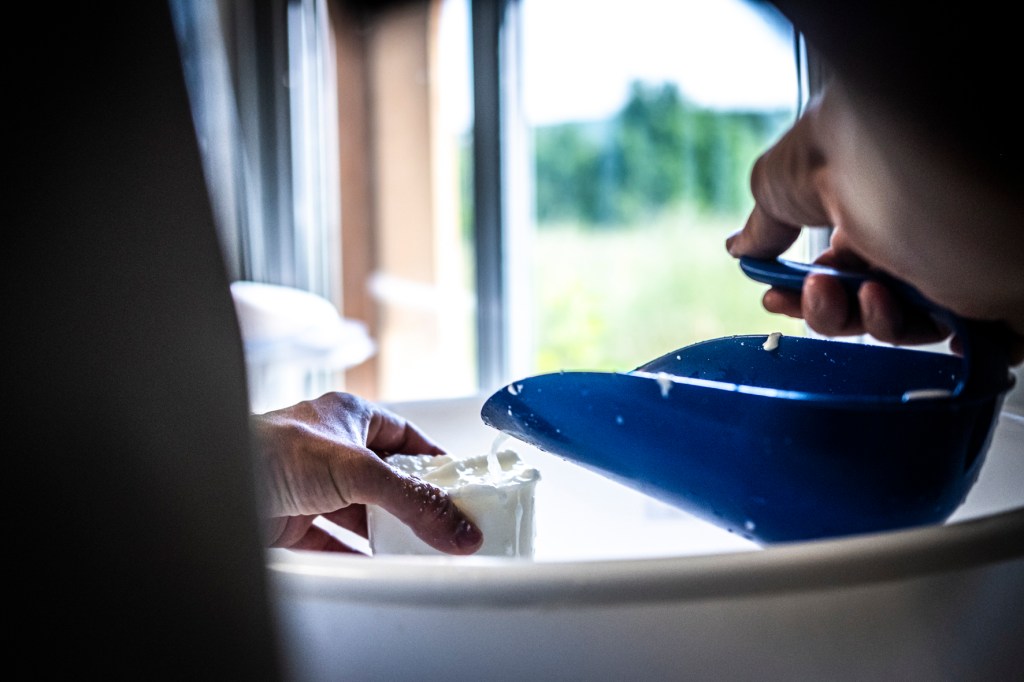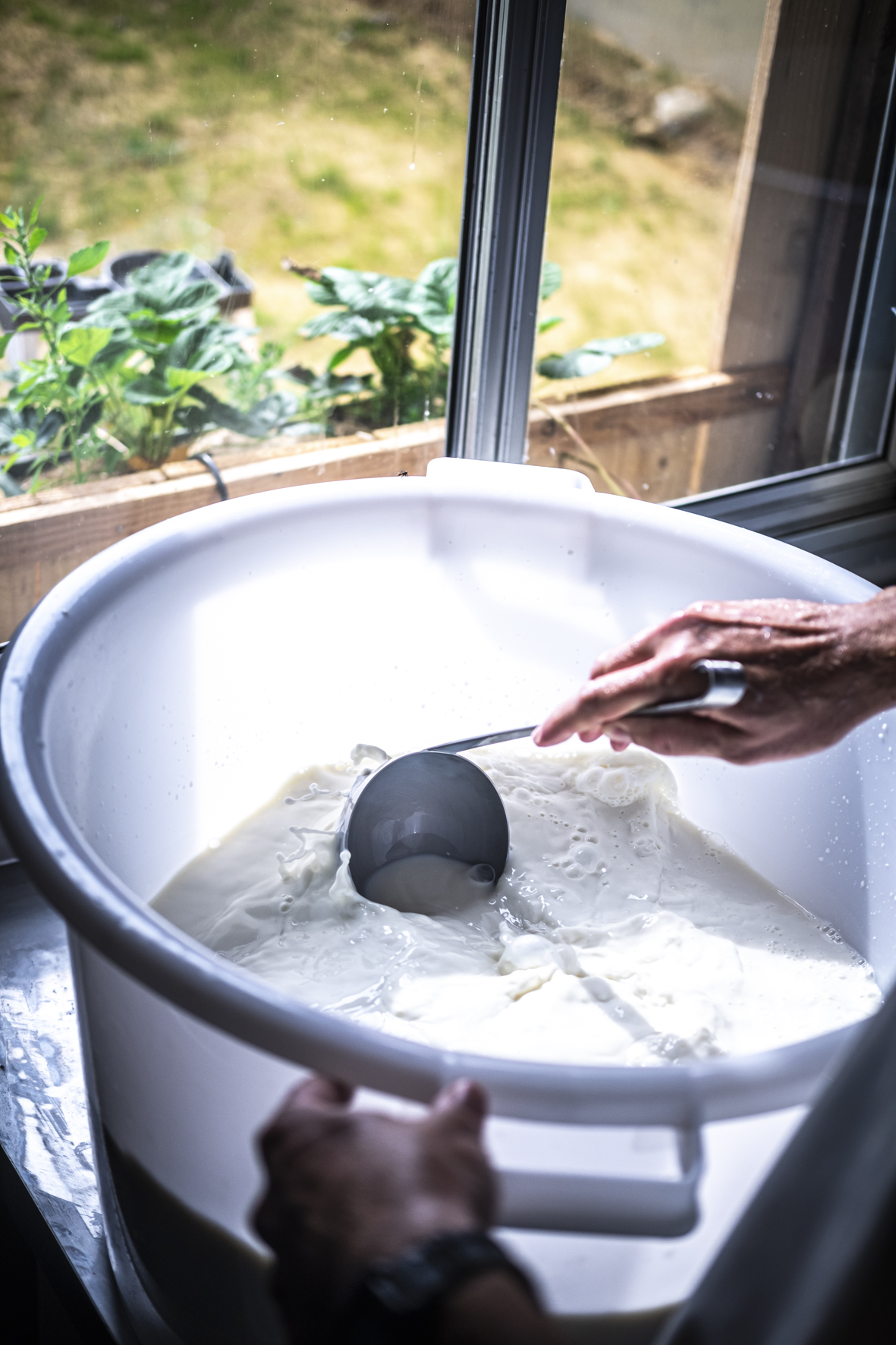 Du fromage blanc peut également être fabriqué, avec une phase d’égouttage dans un sac en toile de lin et un battage du caillé. Délicieux au petit déjeuner
