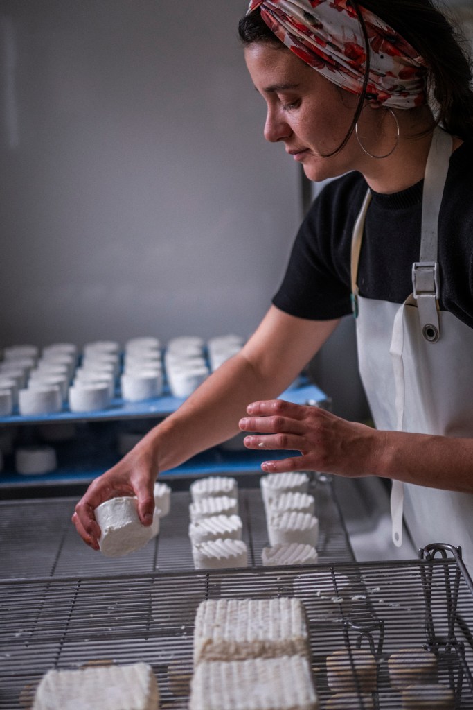 en enzyme ou « présure », et salé à sa juste valeur. S’en suit une phase de coagulation du lait pendant 24 heures, ce qui va former une masse compacte (on dit que le lait « caille »). Le caillé est ensuite récupéré et moulé dans des contenants différents (crottins, bûches, pavés…), selon l’humeur du fromager, et sont alors mis à l’égouttage.